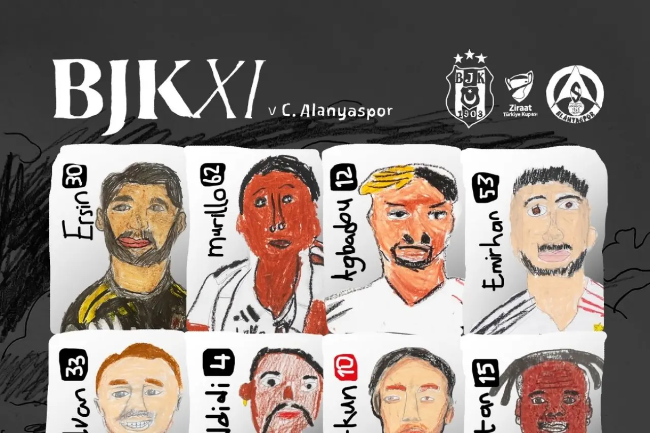 Ziraat Türkiye Kupası'nda kupa hedefiyle yoluna emin adımlarla devam eden şanlı Beşiktaşımız, zorlu Corendon Alanyaspor mücadelesi için sahaya çıkıyor. Kulübümüz, 23 Nisan Ulusal Egemenlik ve Çocuk Bayramı'nın büyük coşkusunu ve anlamını maç günü paylaşımına taşıyarak taraftarımızın gönlünü fethetti. Takımımızın Alanyaspor karşısında sahaya çıkacağı ilk 11 görseli, BJK Kabataş Vakfı Okulları ilkokul öğrencileri tarafından resmedilen birbirinden özel ve sevimli oyuncu çizimleriyle kamuoyuna duyuruldu. Minik kartallarımızın büyük bir emekle hazırladığı bu anlamlı kadro görseli, sosyal medyada taraftarlarımızdan büyük beğeni topladı.