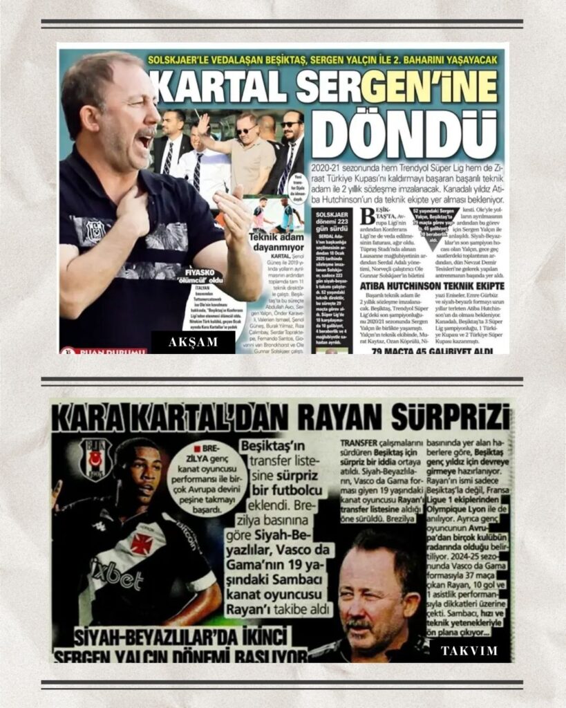 Siyah beyazlı camiada hareketli bir gün yaşanıyor. Teknik direktörlük görevine geri dönen Sergen Yalçın, takımın başında ilk antrenmanına çıktı. Solskjaer ayrılığının henüz KAP’a bildirilmemesi nedeniyle resmi süreç tamamlanmamış olsa da, Yalçın fiilen siyah-beyazlıların kontrolünü devraldı. Taraftar, tecrübeli hocanın yeniden sahaya inişini büyük bir heyecanla karşıladı.