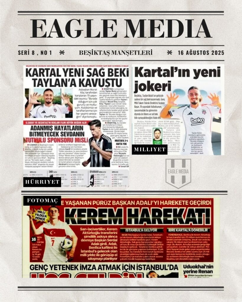 Eagle Media Beşiktaş Haber Beşiktaş Günün Gazete Manşetleri / 16 Ağustos