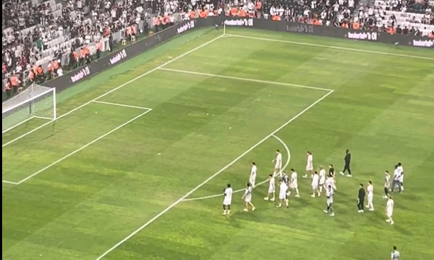 Orkun Kökçü, takımı toplayıp tribünlere götürdü. Mert Günok, taraftarlarla konuştu. Taraftarlar yoğun tepki gösteriyor.
