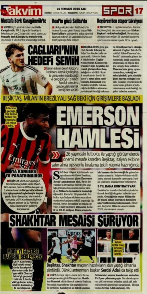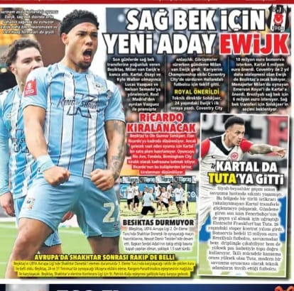 Beşiktaş, yaz transfer dönemi boyunca yaptığı hamlelerle adından sıkça söz ettiriyor. Son dönemde, sağ bek arayışında olan kulüp yönetiminin oyuncu transferleri ve teknik kadro hakkında yaptığı açıklamalar, gazetelerin manşetlerine taşındı. İşte Beşiktaş ile ilgili bugün gazetelerde yer alan öne çıkan başlıklar: