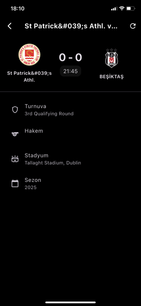 St. Patrick's - Beşiktaş Maçını Uygulamamızdan Canlı Takip Et, Kritik Anlara Yorum Yap!