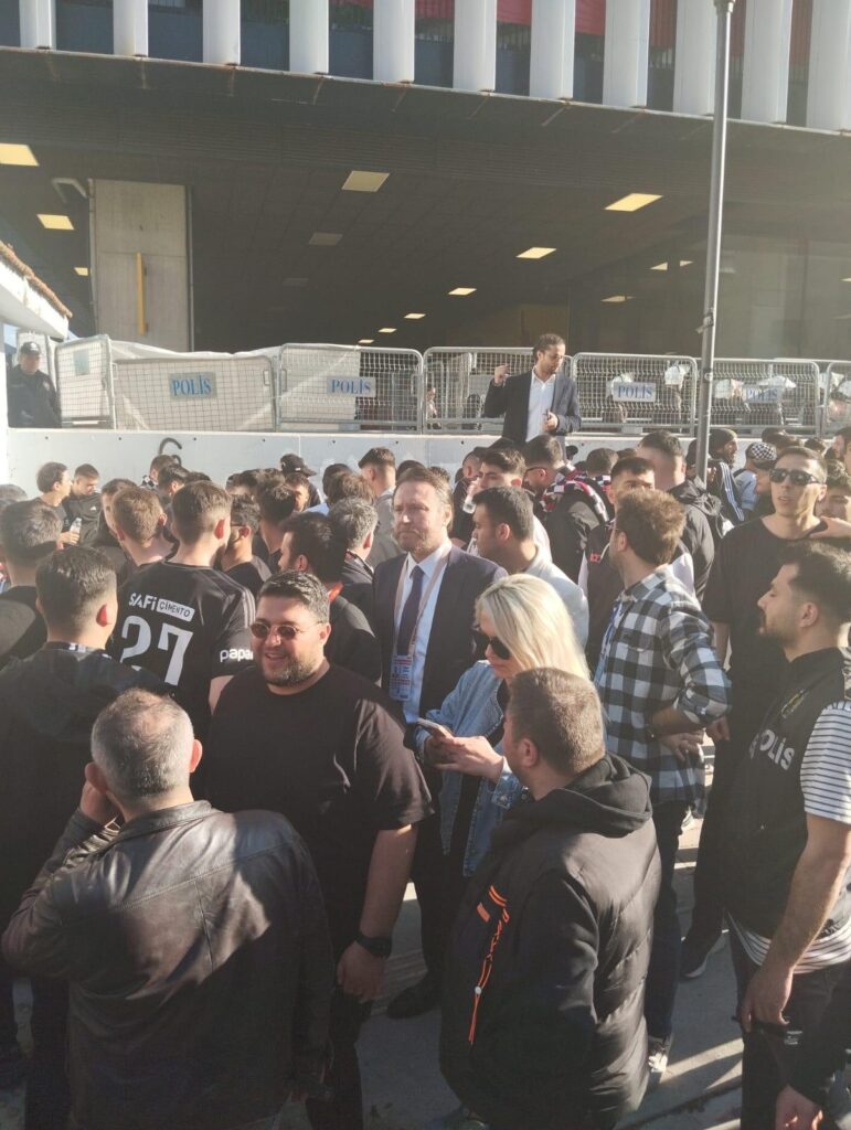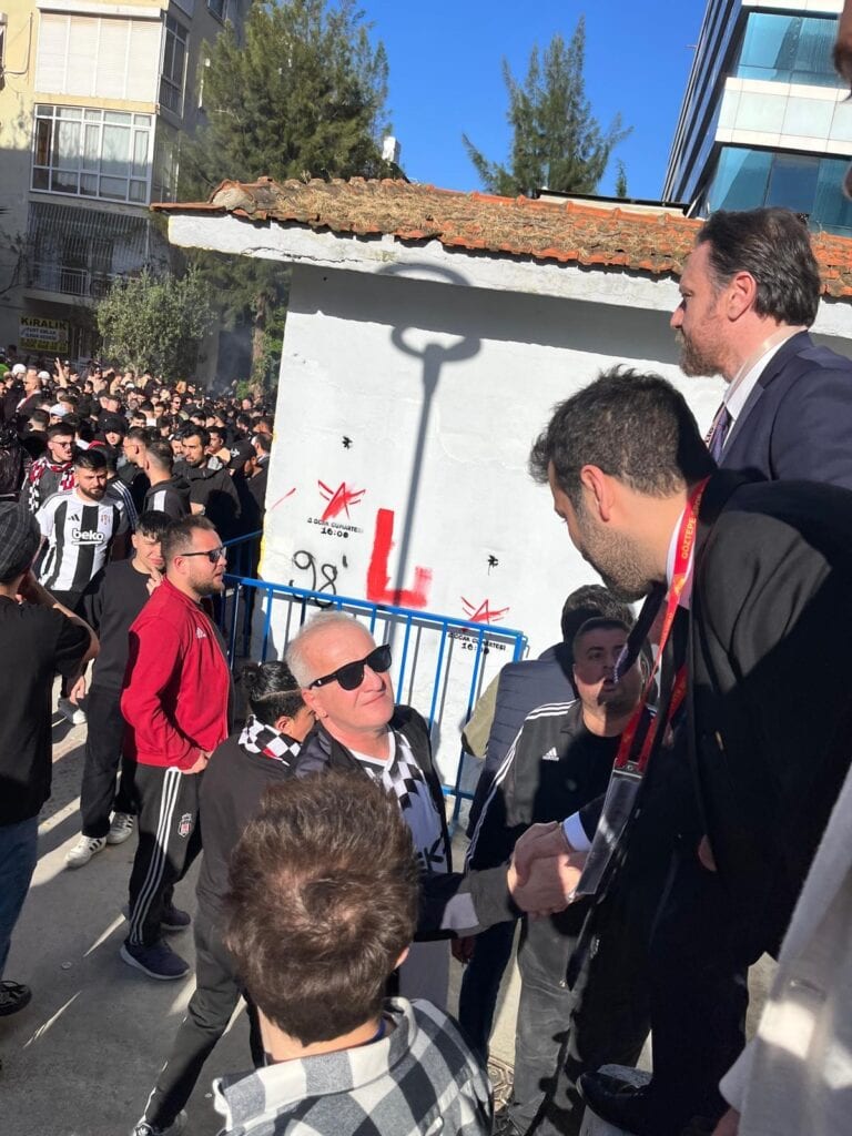 Beşiktaş taraftarı deplasmanda da yalnız bırakılmadı. Genel Sekreter ve Taraftardan Sorumlu Yönetici İbrahim Sağlam, takımın yanında olduğu gibi taraftarın da yanında yer aldı. Sağlam, organizasyonun her aşamasında bizzat görev alarak süreci yakından takip etti.Taraftarın sorunsuz şekilde stadyuma girişi için yoğun çaba gösterildi. İbrahim Sağlam, tribünlerdeki siyah-beyazlı taraftarlarla birebir ilgilenerek, girişlerde oluşabilecek aksaklıkların önüne geçti. Taraftarların herhangi bir problem yaşamadan tribünlere ulaşmasını sağlamak adına süreci baştan sona yönetti.Kulüp yönetiminden örnek destekSağlam’ın bu yaklaşımı, kulüp yönetiminin taraftara verdiği önemi bir kez daha gözler önüne serdi. Taraftarlardan da destek ve teşekkür mesajları geldi.