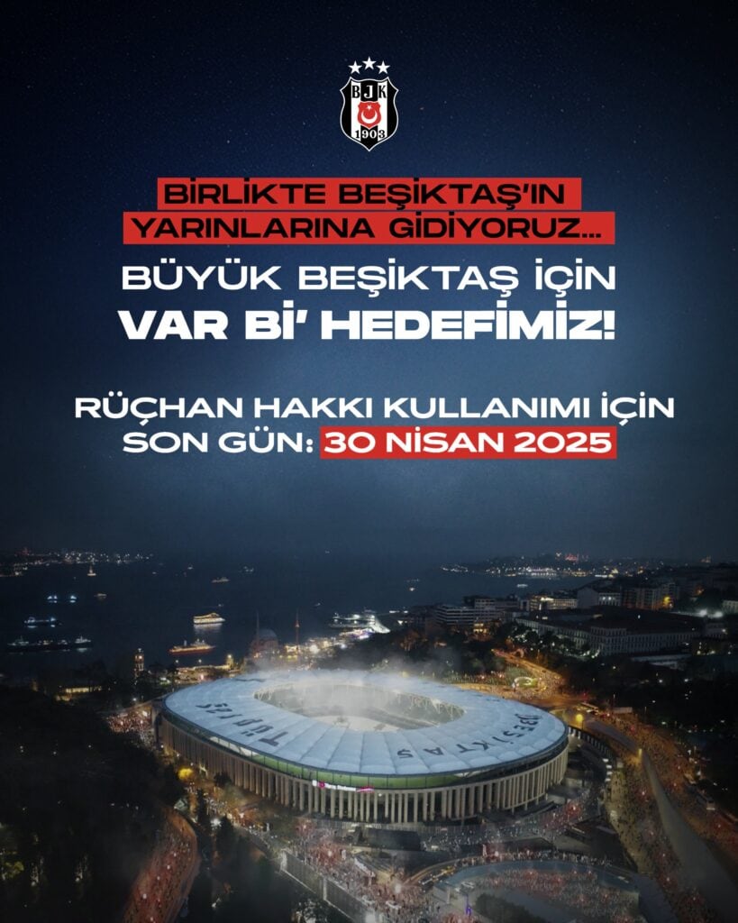 "Her şey bağımsız Beşiktaş için! Rüçhan hakkı kullanımı için yarın son gün, haydi Beşiktaşlı, omuz omuza!"