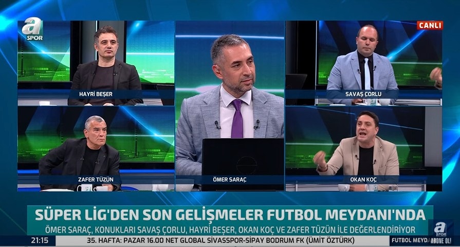 Programda yer alan bir diğer yorumcu Zafer Tüzün ise Beşiktaş’ın derbi performansına daha temkinli yaklaşarak, "Baktığın zaman derbilerde öyle eze eze de oynamadı," ifadelerini kullandı. Bunun üzerine Okan Koç, Galatasaray ile oynanan Süper Kupa maçını hatırlatarak Beşiktaş’ın üstünlüğünü yeniden vurguladı.