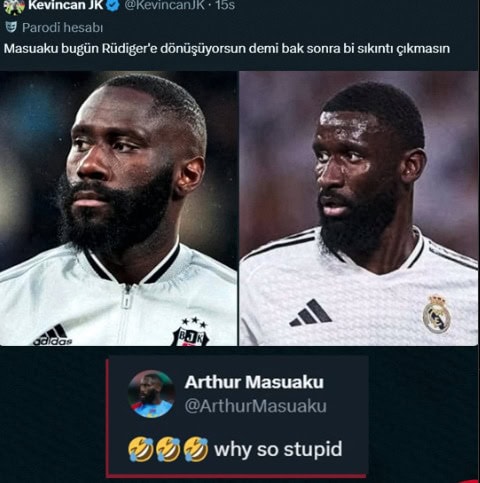 Arthur Masuaku, bir taraftarın dün sosyal medyada yaptığı esprili yoruma dikkat çeken bir yanıt verdi. Taraftar, maç öncesi Masuaku'ya hitaben, “Masuaku bugün Rüdiger’e dönüşüyorsun dimi bak, sonra bi sıkıntı çıkmasın.” şeklinde bir paylaşım yapmıştı. Masuaku ise bu mesaja, “Neden bu kadar aptalsın 😂” cevabını vererek gündem olmuştu.