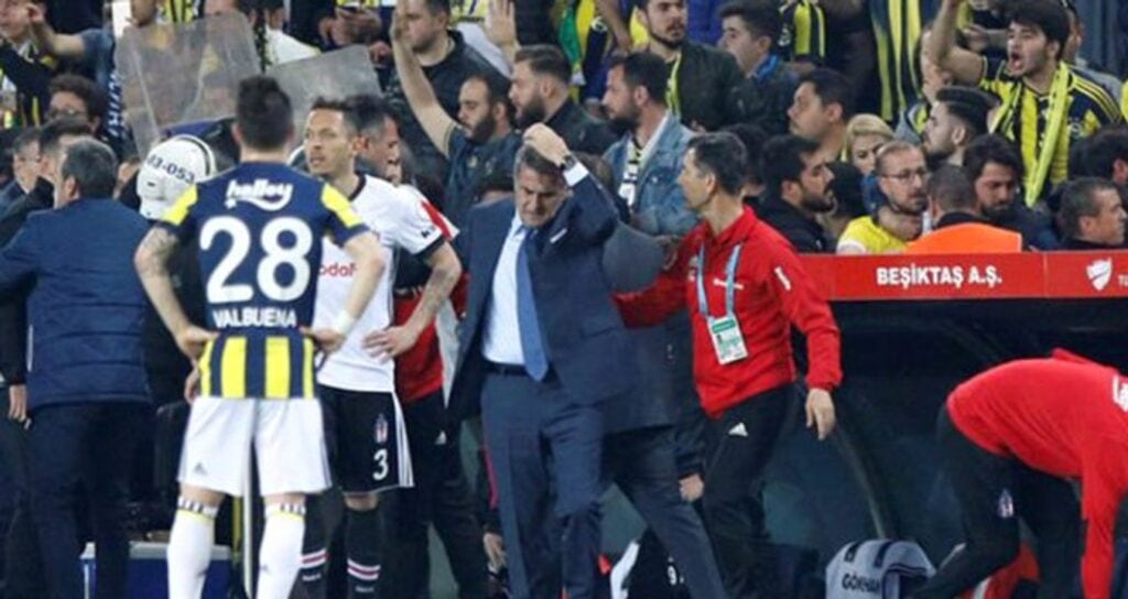 İkinci yarıya gelindiğinde yedek kulübeler önünde gerginlik yaşanmış, Beşiktaş yedek kalecisi Tolga Zengin ile tribünler arasında sözlü sataşmalar olmuştu. Bu sırada Fenerbahçeli taraftarların attığı cisimlerden biri Beşiktaş Teknik Direktörü Şenol Güneş’in kafasına isabet etmişti. Güneş, aldığı darbenin ardından yere yığılmış, kısa süre sonra soyunma odasına götürülmüş ve ambulansla hastaneye kaldırılmıştı.