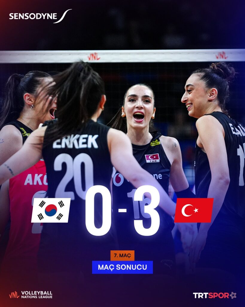 A Milli Kadın Voleybol Takımımız, 2025 Kadınlar VNL 2. etap 3. maçında Güney Kore'yi 3-0 yendi ve 7'de 7 yaptı!