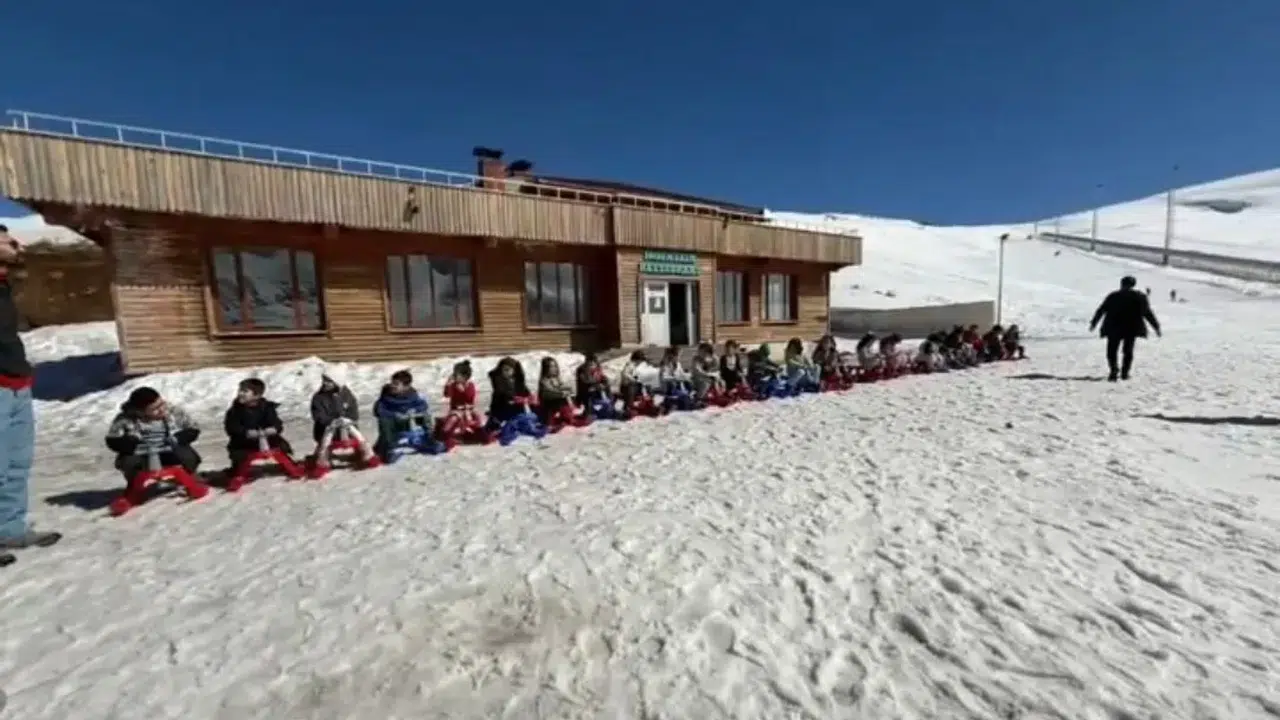 Minikler 3 bin rakımda kayak yaptı