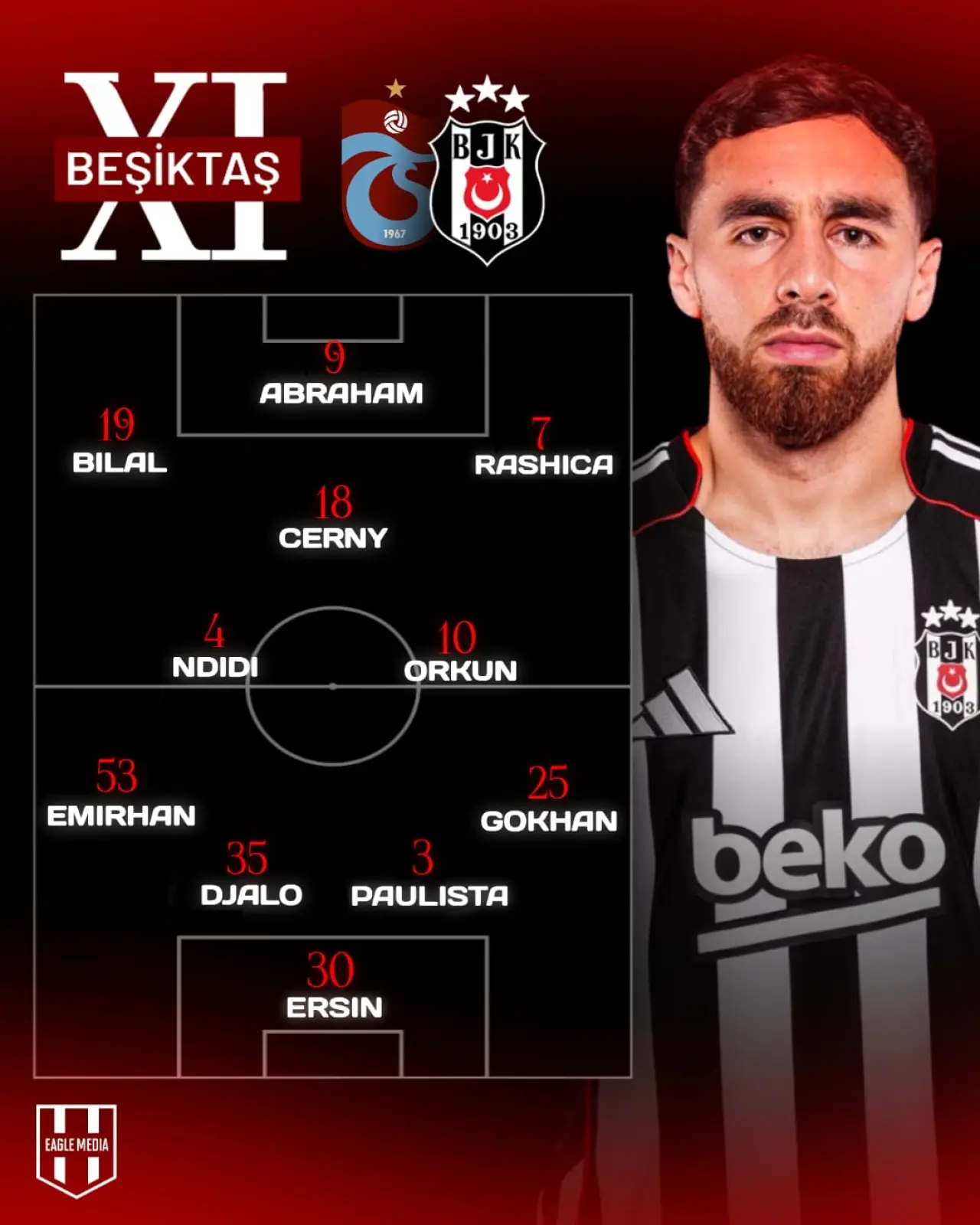 Ersin, Gökhan, Paulista, Djalo, Emirhan, Ndidi, Orkun, Rashica, Cerny, El Bilal, Abraham.