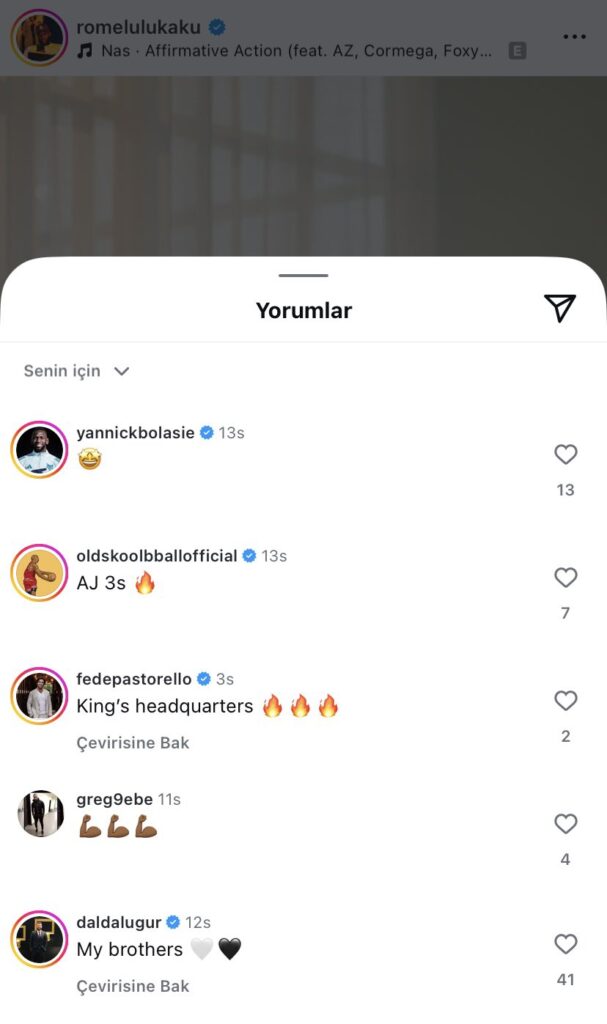 Ayrıca Lukaku’nun yakın arkadaşı, paylaşımın altına "My brothers🖤🤍" yorumunu yaparak destek mesajı verdi. Bu etkileşim, Belçikalı futbolcunun Beşiktaş’la bağlantısını güçlendiren sinyaller olarak yorumlanıyor.