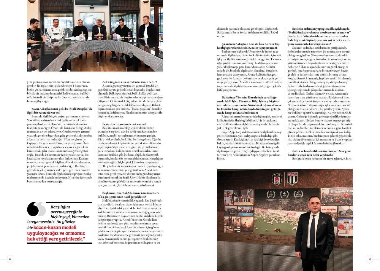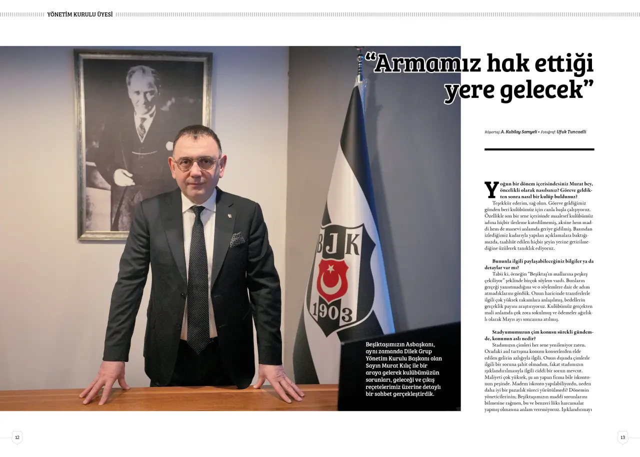 Spot: Beşiktaş Asbaşkanı ve Dilek Grup Yönetim Kurulu Başkanı Murat Kılıç, Beşiktaş Dergisi’nin Mart sayısına özel açıklamalarda bulundu. Kulübün güncel durumu, geleceği ve çözüm yollarına dair önemli değerlendirmelerde bulunan Kılıç’ın röportajı, derginin yeni sayısında yer alıyor.