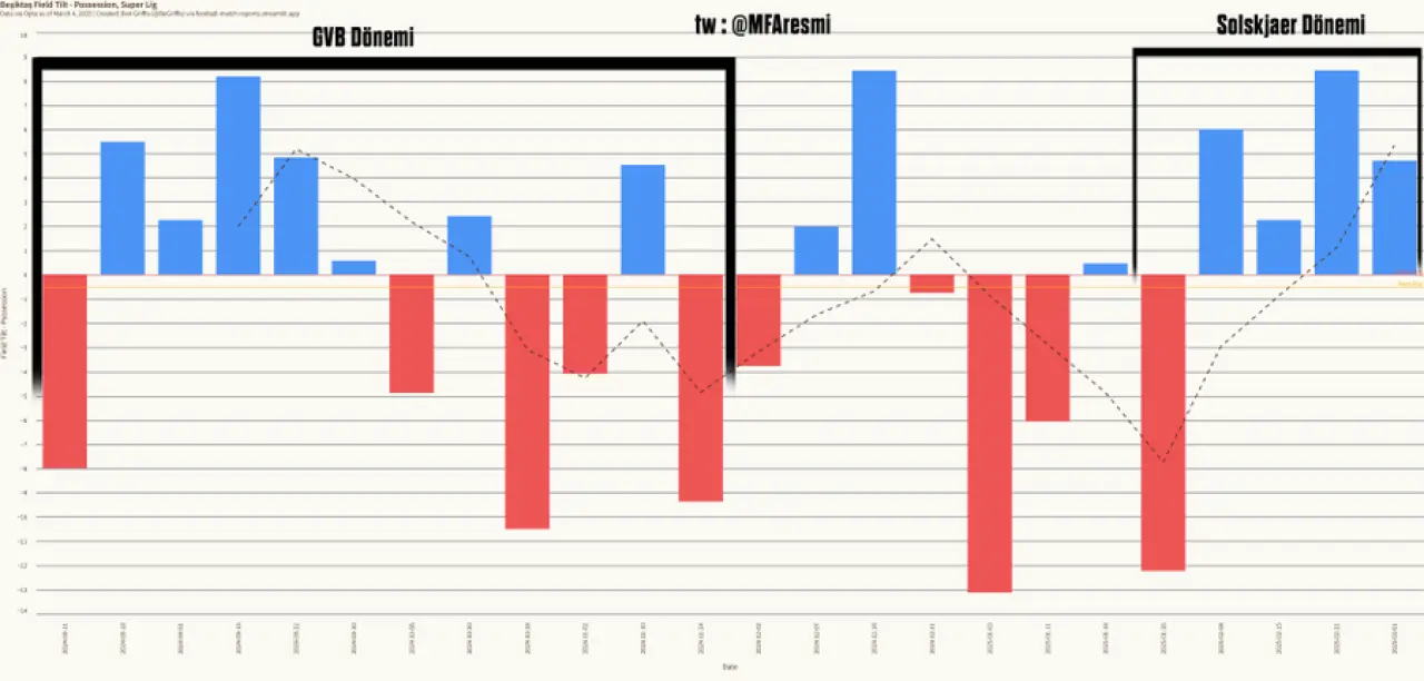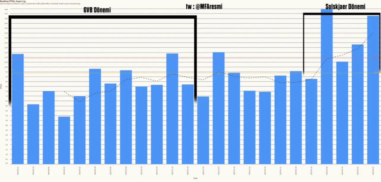 Beşiktaş'ta Ole döneminde bu yükselmiş. Yani Ole hoca ön alanda baskıyı biraz kısmış ve şiddetini düşürmüş.